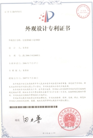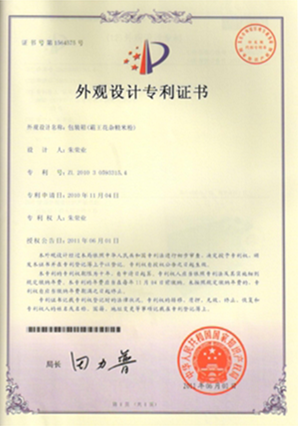 2.8kg雜糧米粉包裝箱外觀設計專利證書