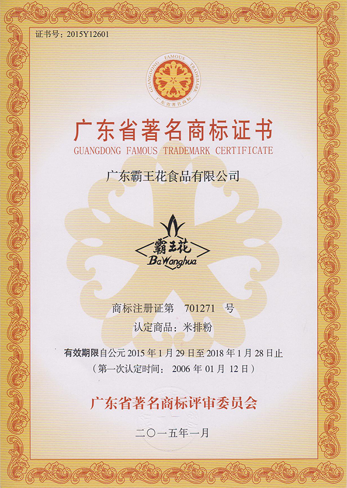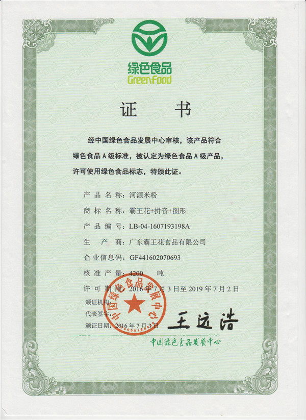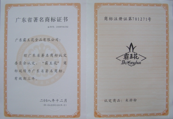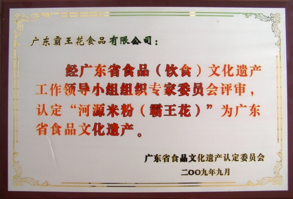 公司生產(chǎn)的“霸王花”牌河源米粉于2005經(jīng)廣東省食品行業(yè)第一個受到國家地理標志保護的產(chǎn)品,獨具特色的傳統(tǒng)制作工藝被列為廣東省食品文化遺產(chǎn)保護項目。