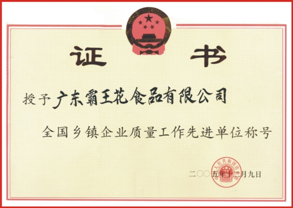 全國鄉(xiāng)鎮(zhèn)企業(yè)質(zhì)量工作先進單位