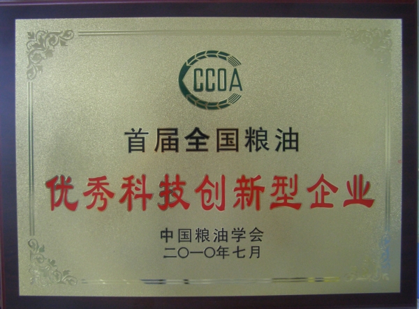 首屆全國糧油優(yōu)秀科技創(chuàng)新型企業(yè)稱號