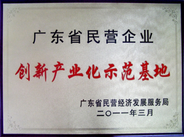 廣東省民營企業(yè)創(chuàng)新產(chǎn)業(yè)化示范基地牌匾