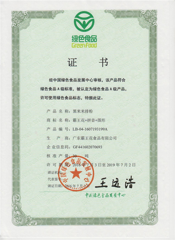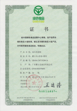 經(jīng)中國綠色食品發(fā)展中心審核,該產(chǎn)品符合綠色食品A級標準。被認定為綠色食品A級產(chǎn)品,許可使用綠色食品標志,特頒此證。